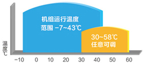 1、運(yùn)行范圍寬廣,-7℃~43℃的寬廣環(huán)境溫度范圍內(nèi)可穩(wěn)定運(yùn)行,讓用戶一年四季都不受外界惡劣天氣的影響。出水溫度30℃~58℃靈活可設(shè),根據(jù)用戶需求隨心設(shè)定,滿足用戶不同的個(gè)性化要求。