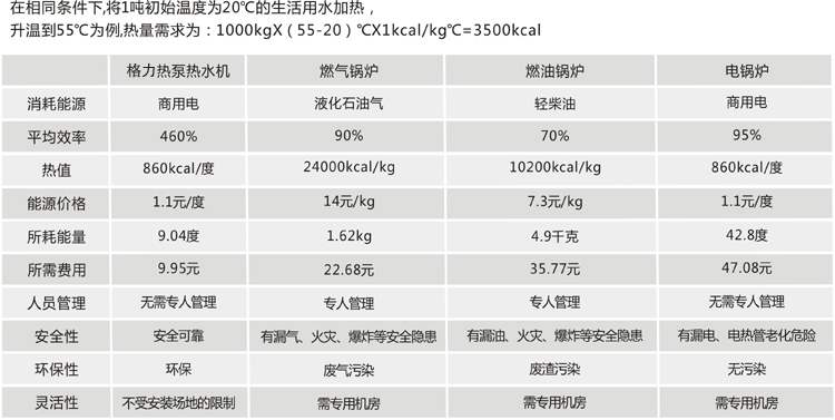 1、名義工況:室外環(huán)境溫度20oC DB/15oC WB,進(jìn)水溫度15oC,出水溫度63oC;